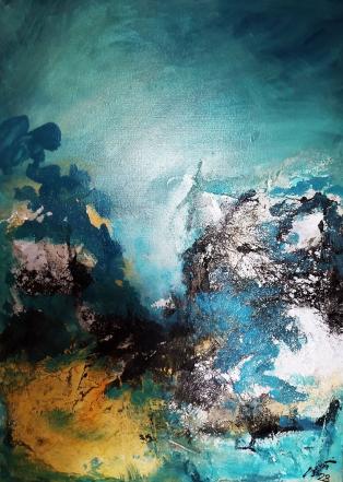 Wasserwelten, Acrylfarbe, Höhe 70 cm Breite 50 cm