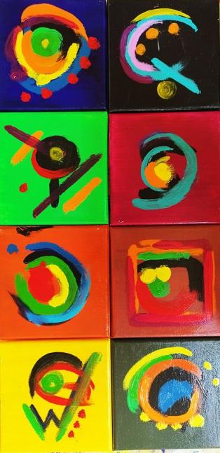 Abstrakte Bilderreihe, Acrylfarbe, 6 Leinwände je Höhe 40 cm Breite 40 cm