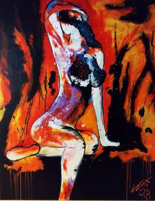 Wilde Hexe, Acrylfarbe, Höhe 100 cm Breite 50 cm Tiefe 4 cm