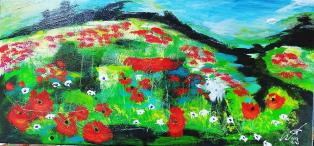 Mohnlandschaften, Acrylfarbe, Höhe 50 cm Breite 100 cm