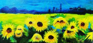 Sonnenblumenfeld, Acrylfarbe, Höhe 40 cm Breite 80 cm